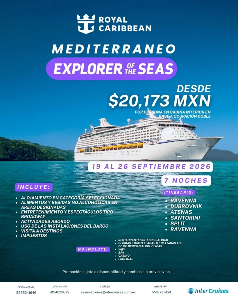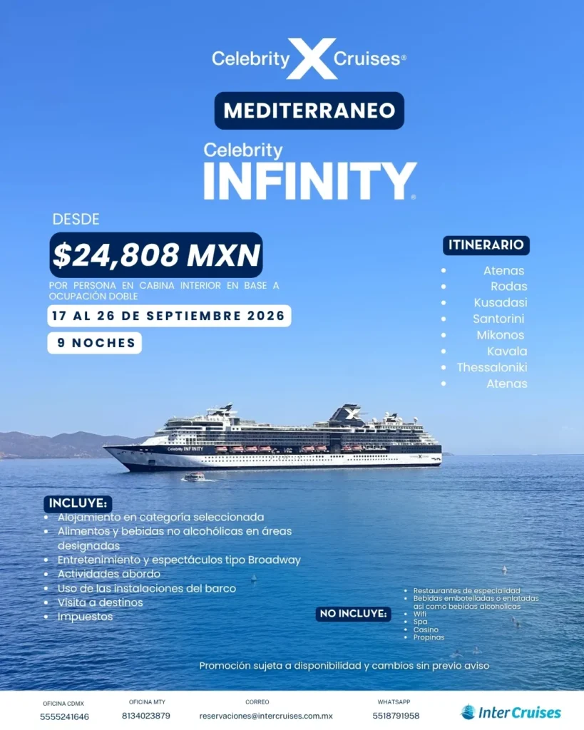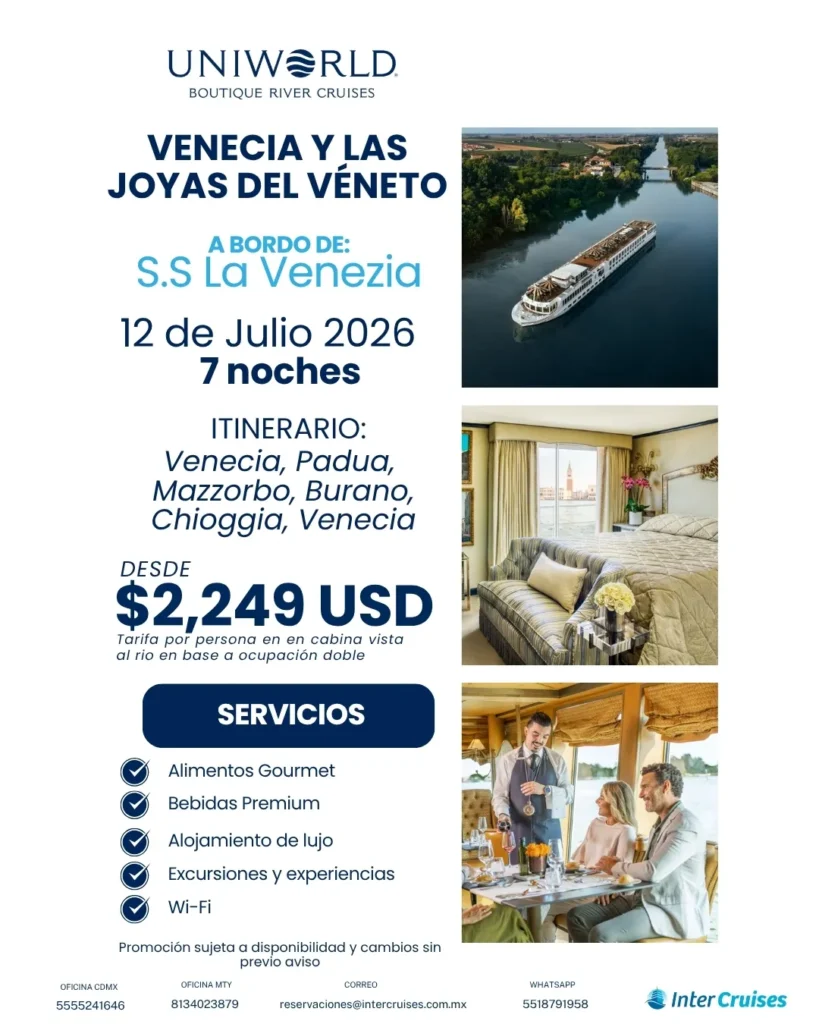 Disfruta de un viaje lleno de cultura, romanticismo y momentos inolvidables a bordo de un crucero de clase mundial.