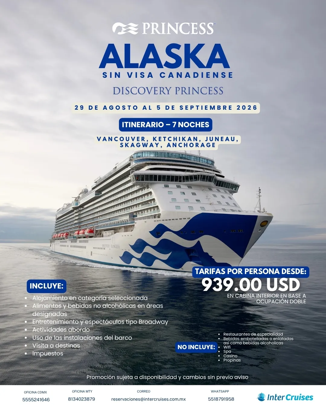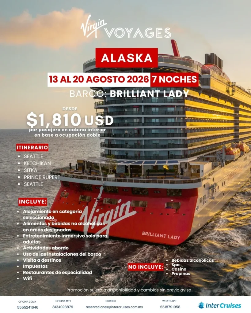 Un crucero por Alaska no es solo un viaje, es una experiencia mágica que combina aventura, relajación y naturaleza como nunca antes la habías vivido.