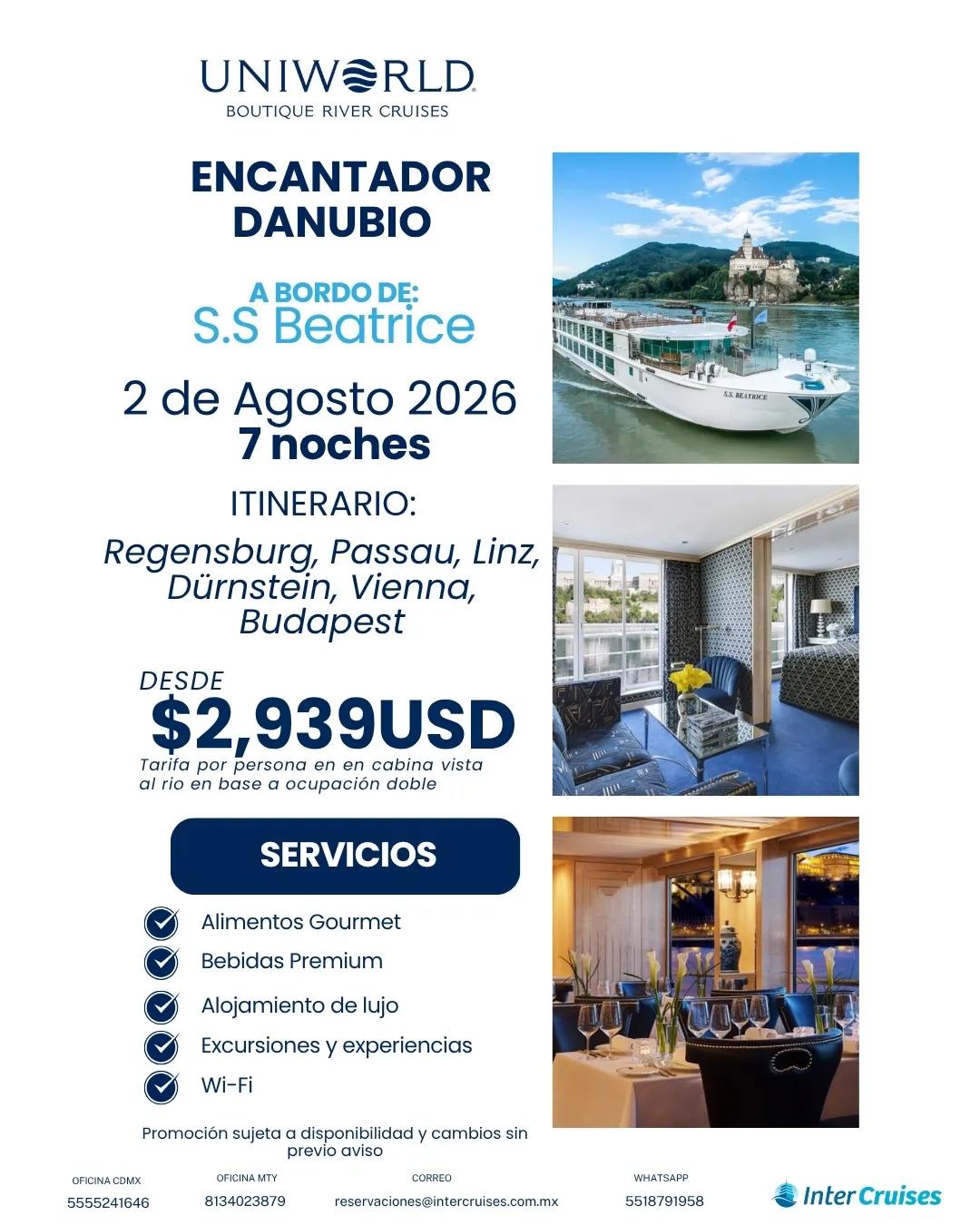 Con un ambiente exclusivo y vistas panorámicas todo el camino, los cruceros de río ofrecen una forma única y elegante de viajar.