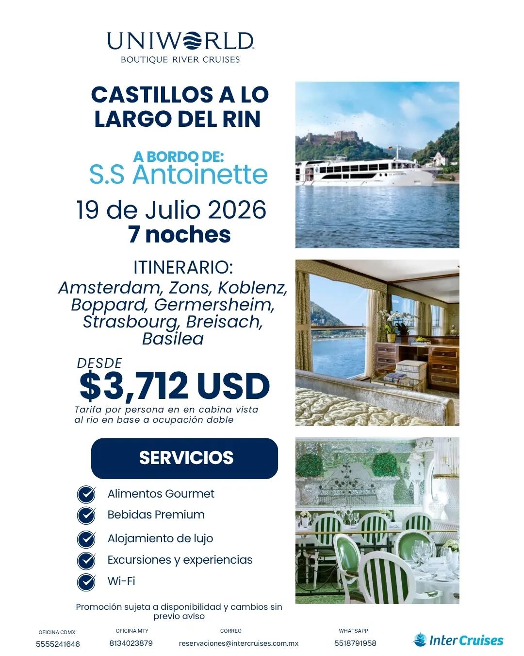 Con un ambiente exclusivo y vistas panorámicas todo el camino, los cruceros de río ofrecen una forma única y elegante de viajar.
